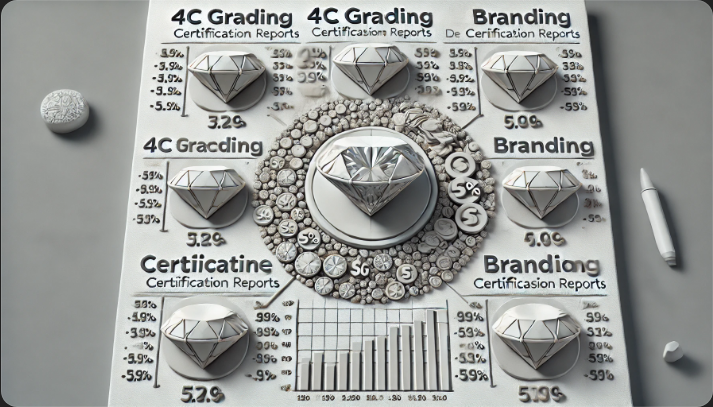 - 일반적으로 GIA(미국 보석 감정 기관) 감정을 받은 다이아몬드는 높은 신뢰도를 가지지만, 일부 로컬 감정서는 상대적으로 가격이 낮게 평가됩니다.