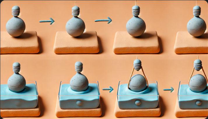 - 공기 중에서는 중력만 작용하기 때문에 물체가 자유롭게 떨어지지만, 물속에서는 중력과 부력이 서로 반대 방향으로 작용하며 힘의 균형을 이루게 됩니다.