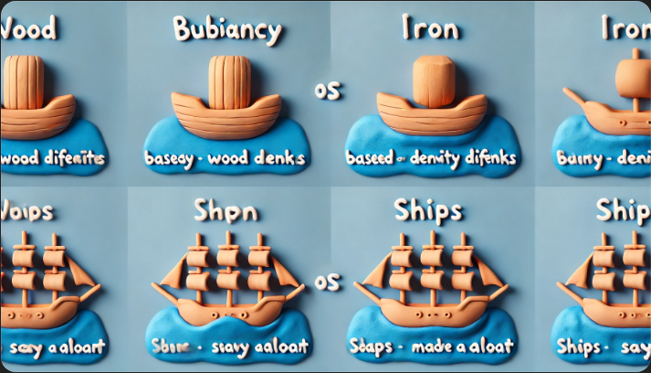- 하지만 같은 철로 만든 배는 내부가 비어 있어 전체 밀도가 낮아지면서 물에 뜰 수 있습니다.