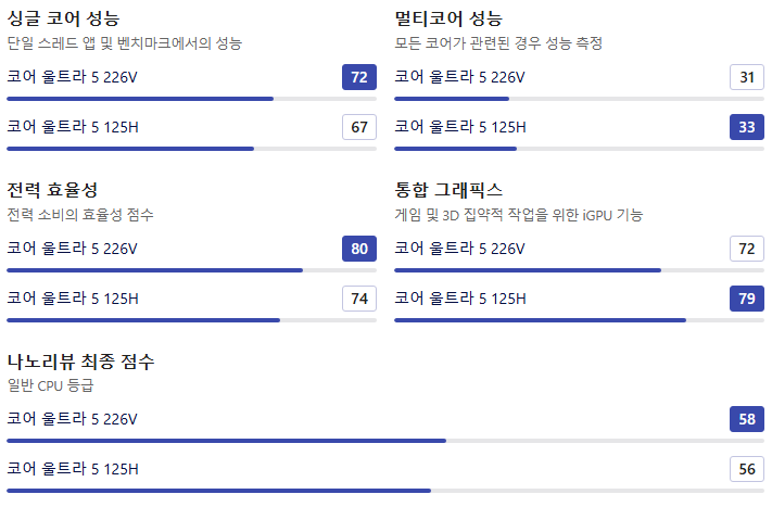 | 항목 | Core Ultra 5 226V | Core Ultra 5 125H |