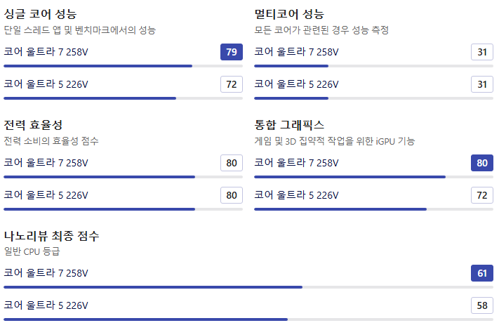 | 항목 | Core Ultra 7 258V | Core Ultra 5 226V |