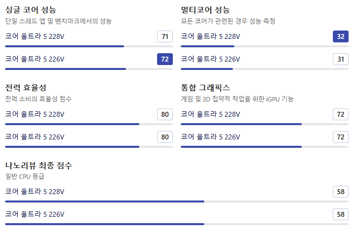 | 지표 | Core Ultra 5 228V | Core Ultra 5 226V |