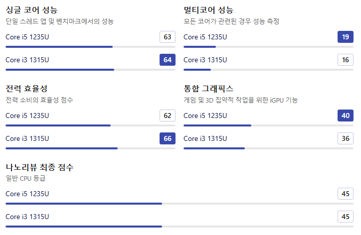 | 지표 | Core i5 1235U | Core i3 1315U |