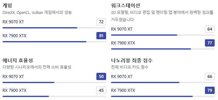 | 항목 | RX 9070 XT | RX 7900 XTX |