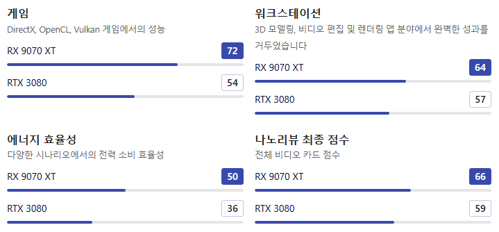 | 벤치마크 | RX 9070 XT | RTX 3080 |