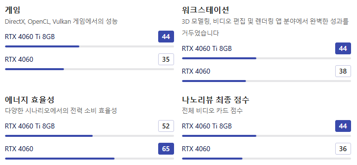 [지포스 RTX 4060 Ti RTX 4060 스펙 비교]