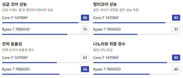 [Intel Core i7 14700KF vs AMD Ryzen 7 7800X3D 스펙 비교]