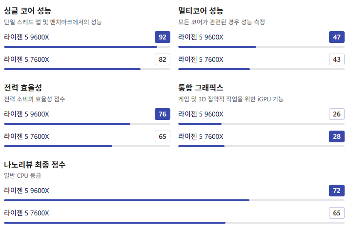 | 기본 성능 지표 | Ryzen 5 9600X | Ryzen 5 7600X |