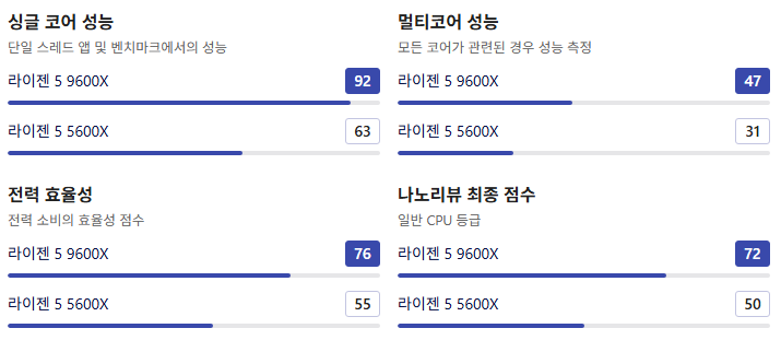 | 기본 성능 지표 | Ryzen 5 9600X | Ryzen 5 5600X |