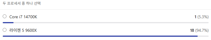 | 항목 | Core i7 14700K | Ryzen 5 9600X |