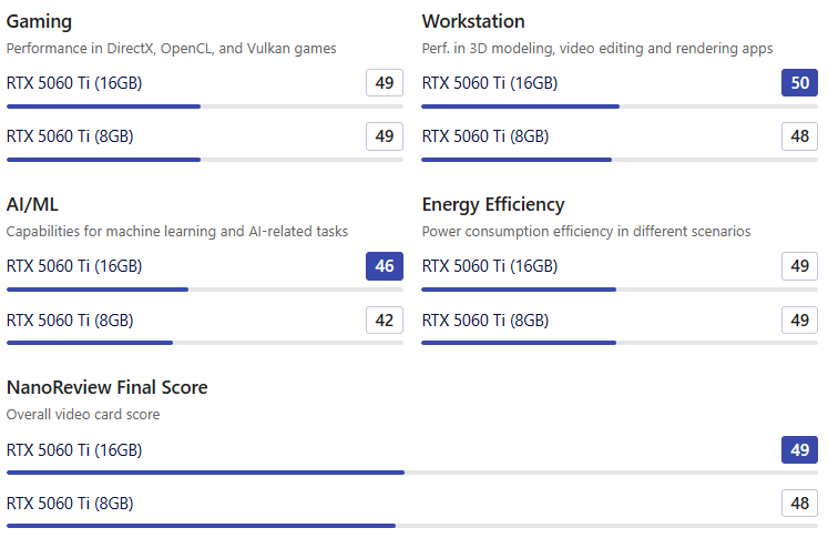 | GFXBench 5 | RTX 5060 Ti (16GB) | RTX 5060 Ti (8GB) |
