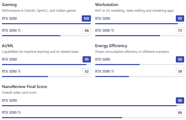 • 참고: RTX 5090은 DLSS 4를, RTX 3090 Ti는 DLSS 2를 지원하므로, 프레임 생성 기술을 활용하면 성능 격차는 상상 이상으로 벌어질 수 있습니다.