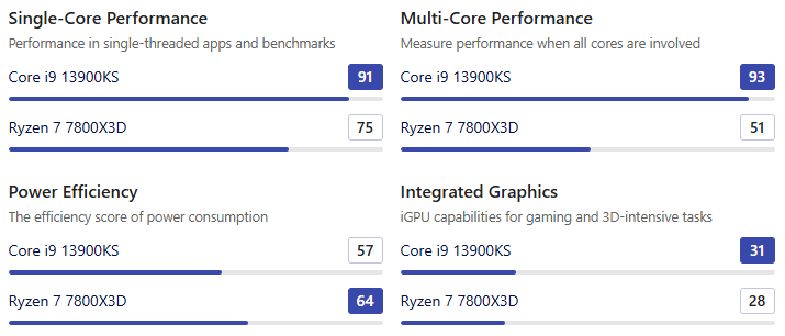 | 기본 성능 지표 | Core i9 13900KS | Ryzen 7 7800X3D |