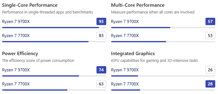 | PassMark CPU Mark | Ryzen 7 9700X | Ryzen 7 7700X |