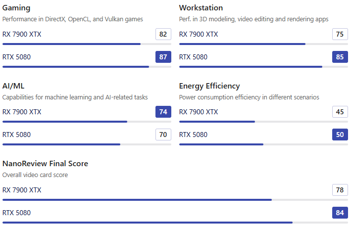 [AMD 라데온 RX 7900 XTX vs 엔비디아 지포스 RTX 5080 스펙 비교]